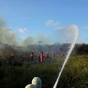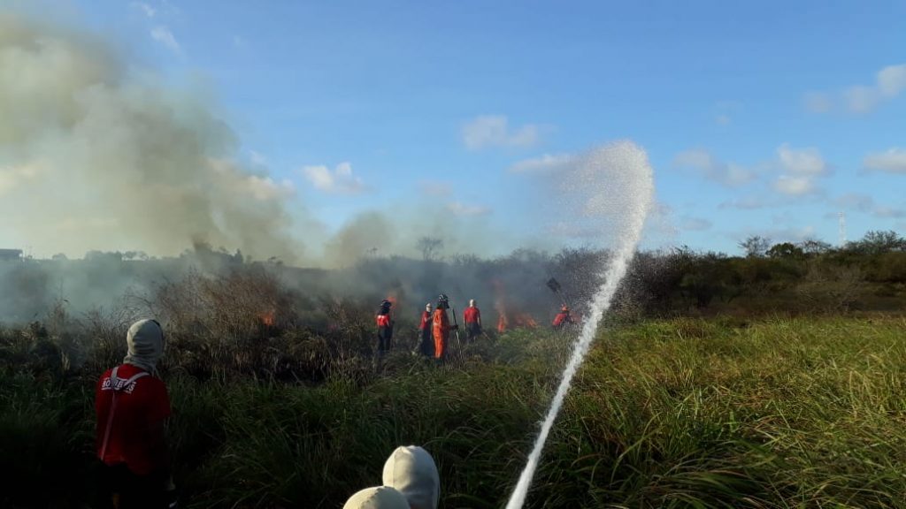 Uma ação conjunta entre o Corpo de Bombeiros Militar de Sergipe e o Grupamento Tático Aéreo da Secretaria da Segurança Pública (GTA/SSP) foi realizada neste sábado, 17, para combater um incêndio em área de vegetação no município de São Cristóvão, nas proximidades do Mosqueiro.