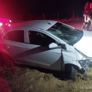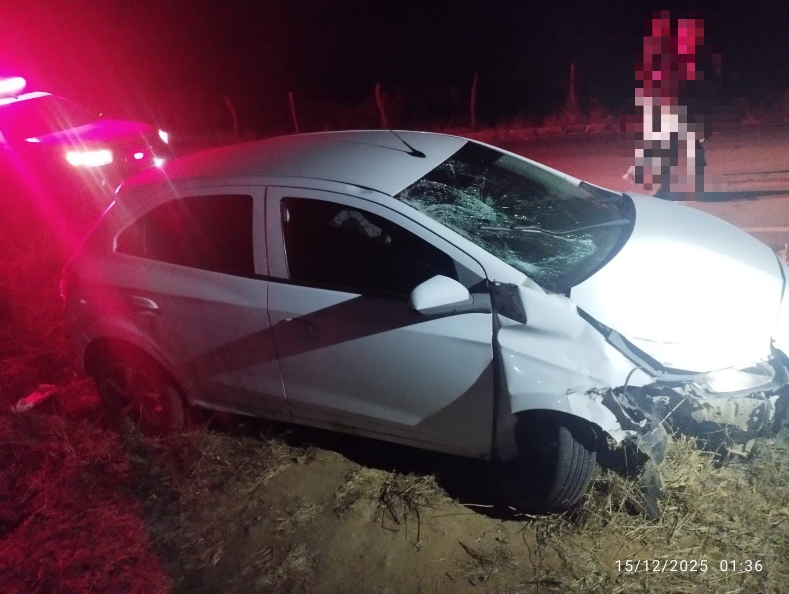 No momento da chegada da equipe, a cena do acidente já estava desconfigurada, com a motocicleta e o automóvel envolvidos posicionados à margem direita da rodovia. Durante a verificação, foi constatado que ambos os veículos não estavam devidamente licenciados, motivo pelo qual foram recolhidos pelas autoridades competentes.