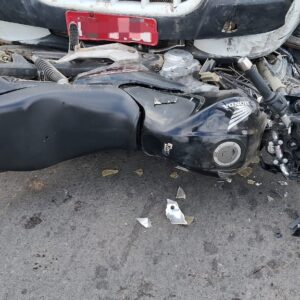 De acordo com informações do Posto Rodoviário Jaguar-20, a guarnição foi acionada pelo Centro Integrado de Operações em Segurança Pública (CIOSP) para atender à ocorrência. No local, foi constatada uma colisão envolvendo dois veículos: um automóvel modelo Doblô e uma motocicleta.