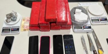 Dando continuidade às diligências, as equipes conseguiram localizar mais dois pontos de apoio ao tráfico, sendo um deles situado no bairro Valadares e outro no Recanto Verde, onde mais uma pessoa foi presa. Nesses endereços foram encontrados quantidades adicionais de maconha, cocaína, balanças e apetrechos usados no fracionamento da droga, evidenciando a estrutura organizada da associação criminosa.