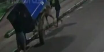 A ação criminosa foi flagrada por câmeras de segurança. Nas imagens, os dois homens em uma carroça se aproximam onde estava o banheiro químico, colocaram em uma carroça fugiram com destino ignorado.