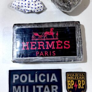 Durante a vigilância policial, os agentes identificaram o homem indicado carregando um bornal azul e o viram se encontrar com um segundo suspeito. Na abordagem, foram encontrados um tablete e pacotes de cocaína, além de maconha.