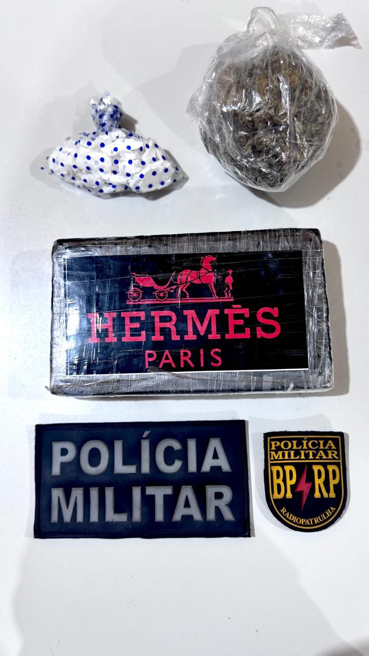 Durante a vigilância policial, os agentes identificaram o homem indicado carregando um bornal azul e o viram se encontrar com um segundo suspeito. Na abordagem, foram encontrados um tablete e pacotes de cocaína, além de maconha.