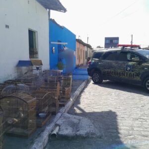 A ação ocorreu após denúncia registrada no Centro Integrado de Operações em Segurança Pública (Ciosp). No local, os policiais constataram a criação irregular de 34 aves silvestres mantidas em cativeiro, sem a devida autorização dos órgãos ambientais.