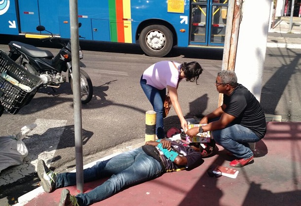 O SAMU foi acionado e realizou os primeiros socorros no local e em seguida, conduzia o rapaz da moto FAN para um hospital.