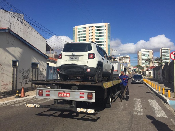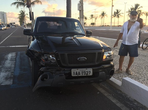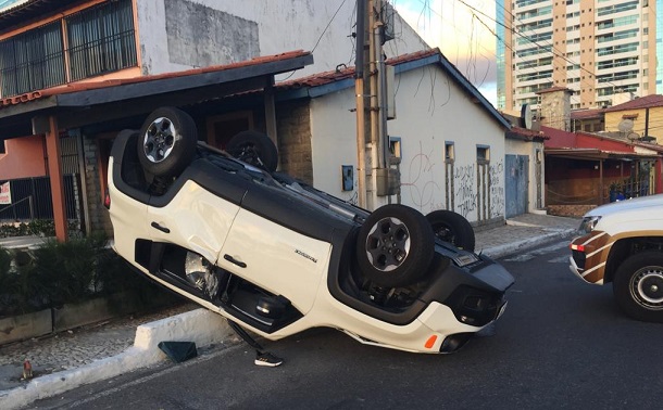 Com o impacto, o JEEP rodou e veio a capotar no cruzamento da Avenida Santos Dumont com Rua Bráulio Costa.