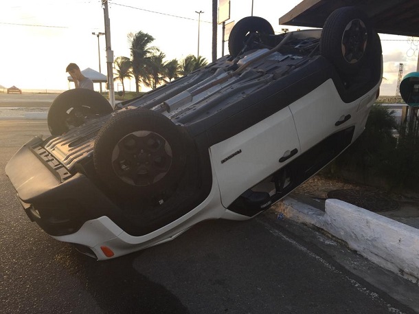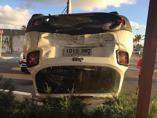 Por volta da cinco horas da manhã desta quinta-feira, dia 27, um acidente de trânsito na Avenida Santos Dumont, na Orla de Atalaia em Aracaju, envolvendo um Jeep Renegade de placa OME 0101, de cor branca que estava com quatro ocupantes e uma caminhonete de cor preta, de placa IAA 1927, causou um capotamento e por pouco, não seria uma tragédia.