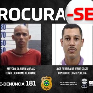 Os dois principais suspeitos seguem foragidos. Informações sobre o paradeiro podem ser repassadas, de forma anônima, ao Disque-Denúncia 181.