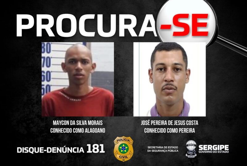 Os dois principais suspeitos seguem foragidos. Informações sobre o paradeiro podem ser repassadas, de forma anônima, ao Disque-Denúncia 181.