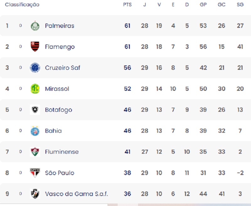 Na tarde desse domingo, dia 19, no estádio do Maracanã no Rio de Janeiro, o time do Flamengo venceu o Palmeiras no Campeonato Brasileiro da serie A por 3 x 2 com a vitória, chegou aos mesmos 61 pontos na tabela geral de classificação. Mas não assume a liderança porque o Palmeiras possui uma vitória a mais .