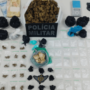 A prisão ocorreu após denúncia de que uma mulher estaria sendo agredida pelo companheiro, que também atuava no tráfico. No local, os militares encontraram o suspeito e, durante buscas na residência, apreenderam cocaína, maconha e crack, totalizando cerca de 560 gramas, além de uma balança de precisão e R$ 69 em dinheiro.