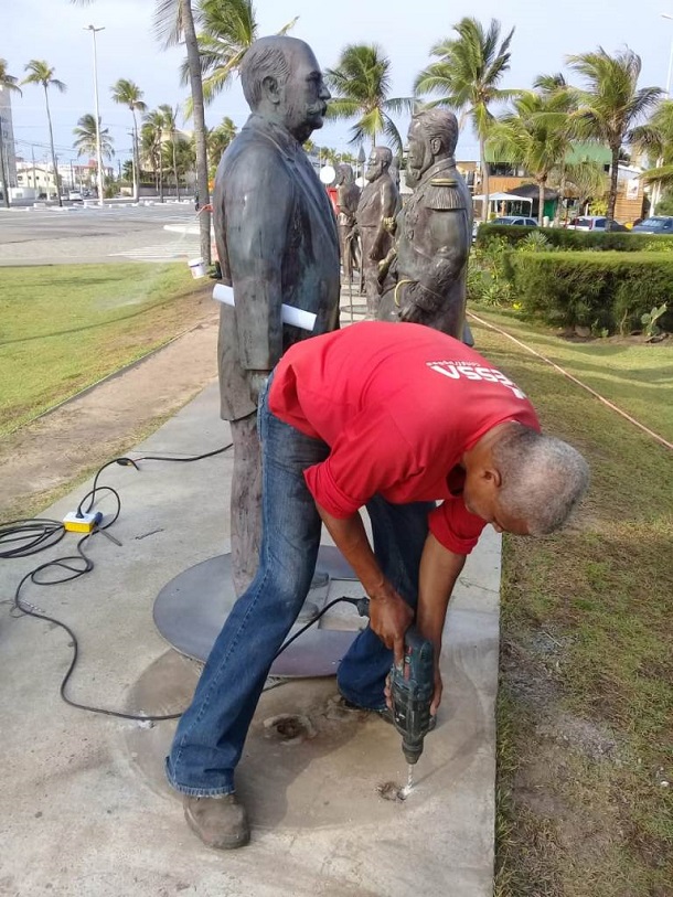 Arrancadas por vândalos em 17 de novembro, as estátuas foram recolhidas por Policiais Militares, conduzidas até a Seinfra, recuperadas e devidamente reinstaladas no monumento, que é um dos locais mais visitados por turistas e freqüentadores da orla.
