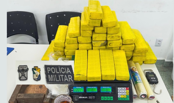 Na casa, foram apreendidos mais cinco tabletes da droga. Já no sítio, os militares encontraram novas porções de maconha, duas balanças de precisão e materiais para embalagem, totalizando mais de 35 kg de substância ilícita.