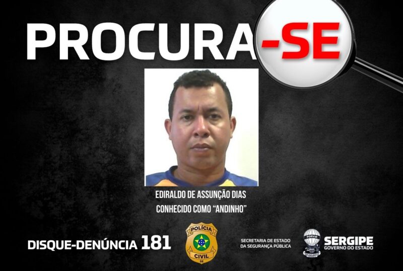 Como desdobramento da Operação Hibernação Final, a polícia também divulgou a imagem de Ediraldo de Assunção Dias, conhecido como “Andinho”, apontado como integrante do grupo e que permanece foragido. Denúncias anônimas podem ser feitas pelo telefone 181.
