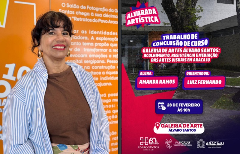 A programação deste mês integra a série de atividades em celebração aos 60 anos da GAAS e contará com a apresentação do Trabalho de Conclusão de Curso de Amanda Ramos Pereira, desenvolvido no curso de Artes Visuais – Licenciatura da Universidade Federal de Sergipe (UFS). Com o tema “Galeria de Arte Álvaro Santos: acolhimento, resistência e mediação das artes visuais em Aracaju”, a atividade será realizada na própria galeria, espaço que dialoga diretamente com a pesquisa, fortalecendo a relação entre universidade, território e práticas artísticas.