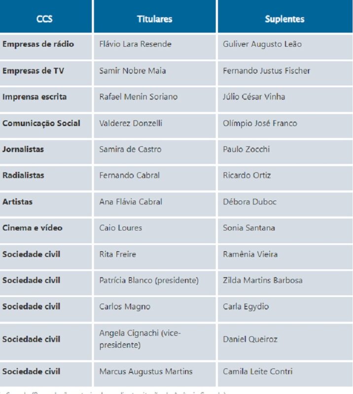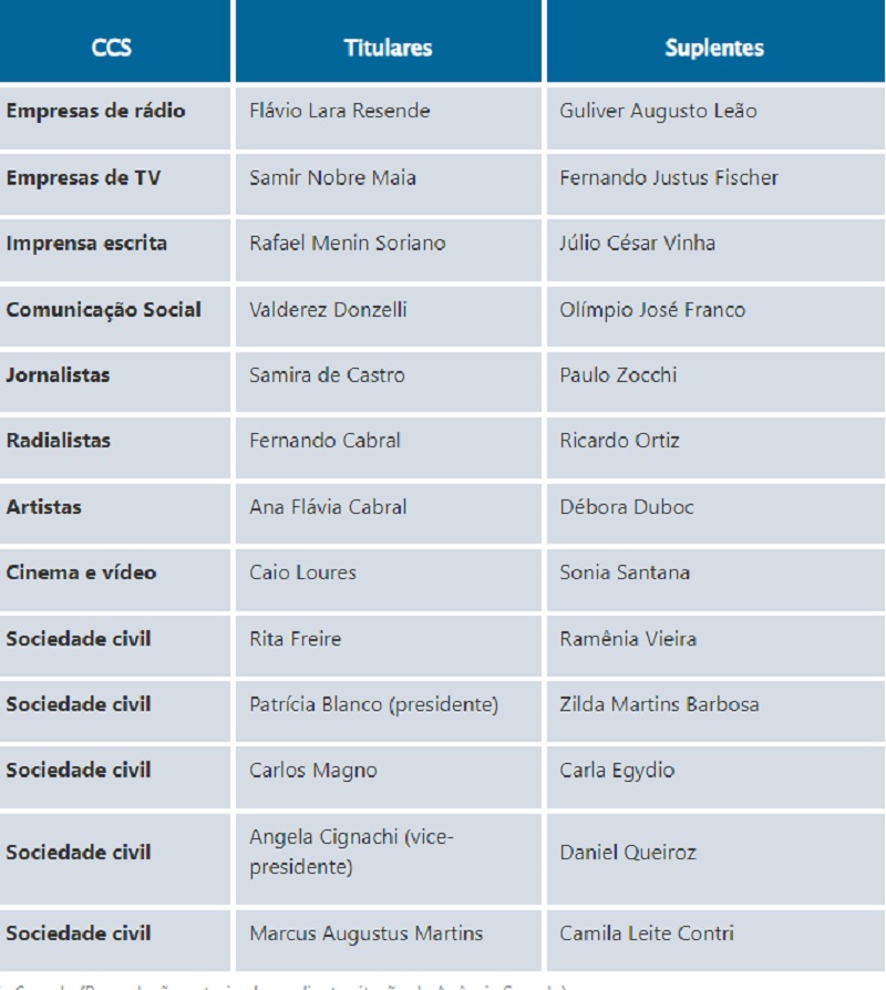 Na mesma reunião, houve a posse de Patrícia Blanco e Angela Cignachi, eleitas presidente e vice-presidente do CCS para o próximo biênio, onde vale lembrar, que o Conselho de Comunicação Social do Congresso Nacional (CCS) foi instalado nessa segunda-feira , 09, com novos integrantes.