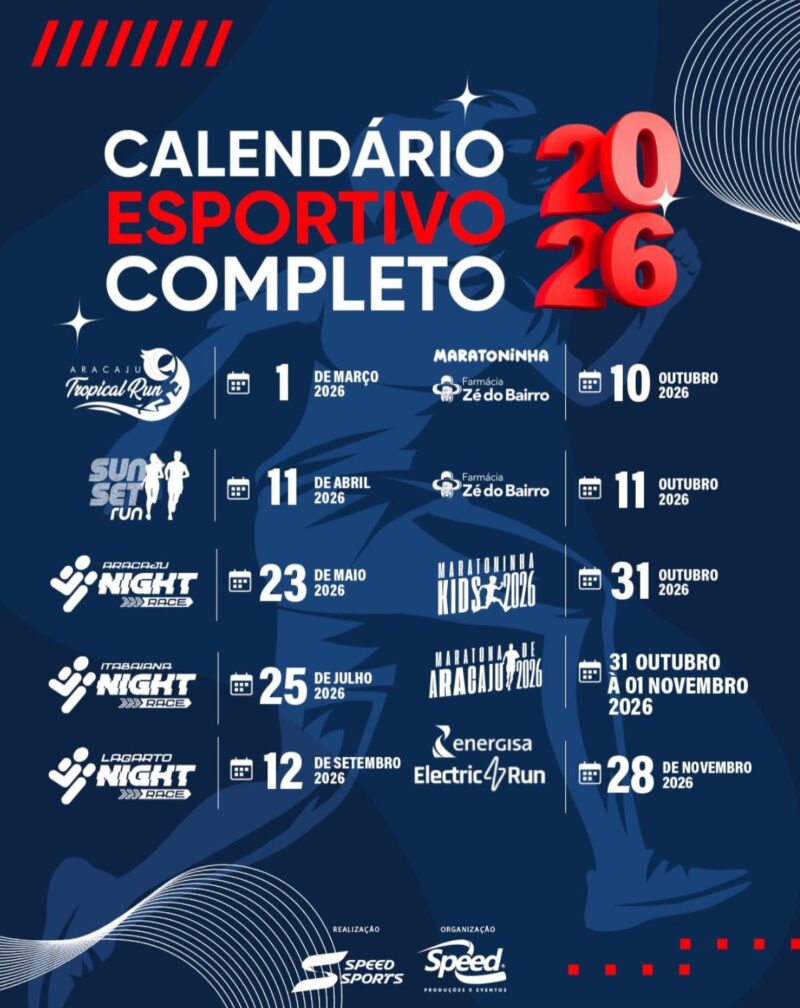 A Speed Produções e Eventos divulgou oficialmente o calendário de corridas para 2026, reforçando seu protagonismo no cenário esportivo do Nordeste e consolidando Aracaju como um dos principais polos de corrida de rua do país. O cronograma reúne provas consagradas, eventos noturnos e grandes desafios que devem mobilizar milhares de atletas ao longo do ano.