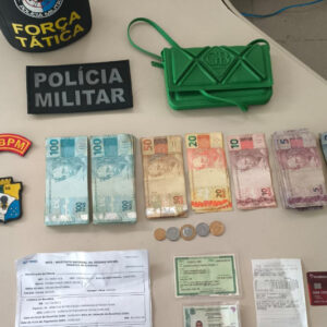 A dupla foi localizada após denúncia de atividade suspeita em uma instituição financeira. Durante a abordagem, os policiais encontraram mais de R$ 12 mil em dinheiro e documentos com indícios de falsificação.